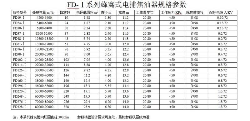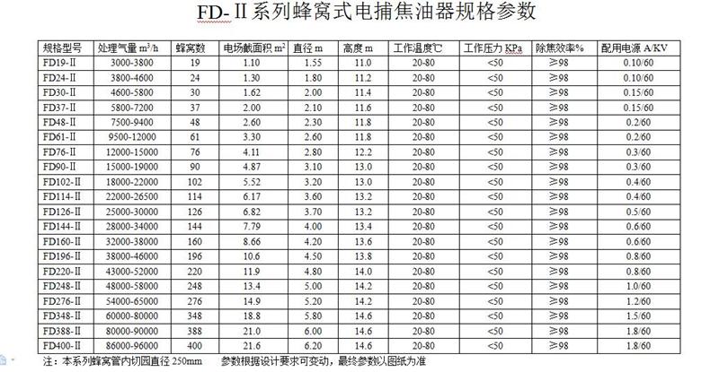 蜂窩式電捕焦油器殼體采用圓筒式結(jié)構,內(nèi)件沉淀極所采用結(jié)構形式類似蜂窩式,蜂窩式的結(jié)構是將通道截面為正六邊形。兩個相鄰正六邊形共用一條邊,即靠中間的正六邊形的六條邊均被包圍它的六個正六邊形所共用。用2-3mm的鋼板制成的蜂窩板即可滿足工藝和機械強度的要求。設備殼體由筒體、器頂封頭與器底斜底組合而成。整個除焦器分為上、中、下3 段, 上、中部為高壓靜電場, 下部為集焦油室。浸漬罐煙氣由下端側(cè)面進入, 凈化后的潔凈氣體由上端頂部由風機排出, 除塵器底部留有人孔維修方便。下端進氣口設有2 層多孔板型氣流分布板, 使氣體在電場中均勻分布, 中部為高4-5m 的高壓靜電場。 其原理即在金屬導線與金屬管壁(沉淀極板)間施加高壓直流電,使陰陽極之間形成電暈區(qū)。當含焦油霧滴等雜質(zhì)的氣體通過該電場時,吸附了負離子和電子雜質(zhì)在電場庫倫力的作用下,移動到沉淀極后釋放出所帶電荷,并吸附于沉淀極上,當吸附于沉淀極上的雜質(zhì)量增加到大于其附著力時,會自動向下流并從電捕焦油器底部排出,從而達到凈化氣體的目的。蜂窩式電捕焦油器與其他焦油器相比,由于蜂窩式電捕焦油器具有結(jié)構緊湊合理、沒有電場空穴,具有筒徑小,占地少,有效截面(氣凈化工作面)大,氣體處理量大成本低,電耗小,收焦油量大且油質(zhì)優(yōu)良,凈化效率高,處理后各種污染物可達標排放的優(yōu)點。達到的技術指標,可明顯改善操作環(huán)境。